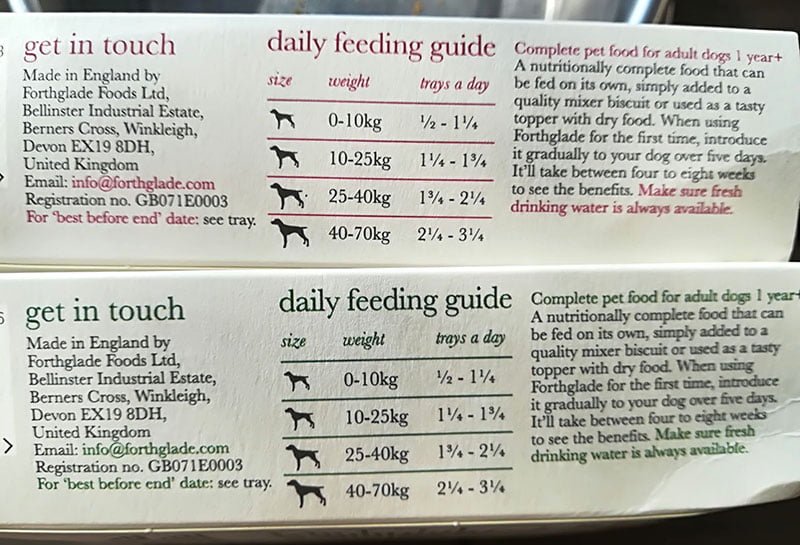 Las bandejas de comida húmeda de Forthglade, son perfectas para todo tipo de perrines, raza o mestizaje, tamaño… solo hay que mirar en la parte de atrás la cantidad recomendada según el peso.
