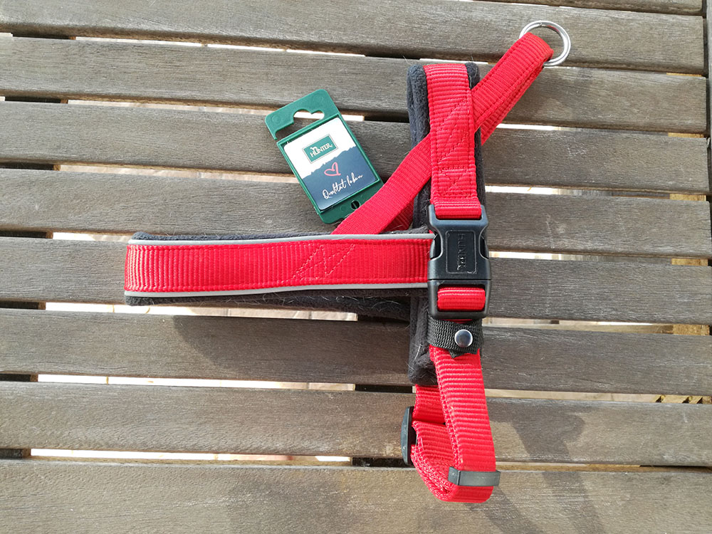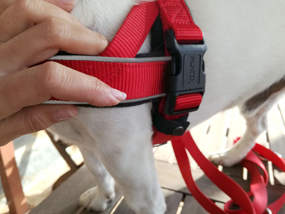 He intentado reajustarle el Julius para que no le roce con el cierre, pero con el tiempo se le vuelve a adaptar a su cuerpo y volvemos a las mismas. Así que nada, me puse a buscar, a preguntar, hice comparativas y al final me decidí por un arnés muy concreto de Hunter, el Racing Norwegian.