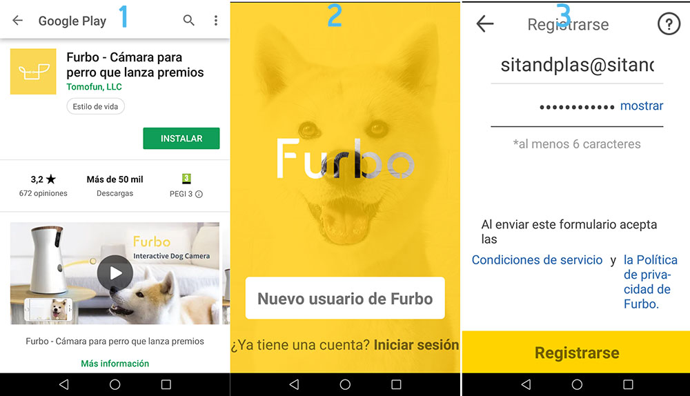 3. Abrimos la APP Furbo en el móvil y nos registramos