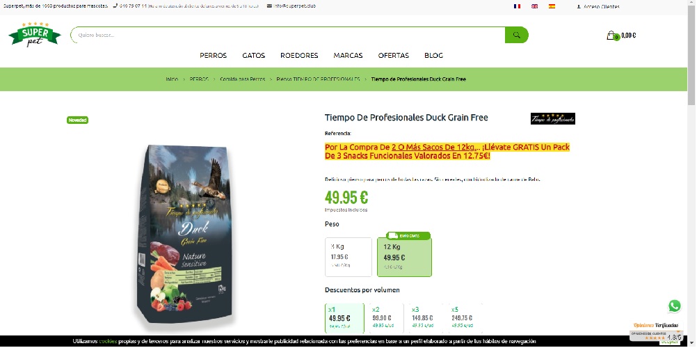 En SUPERpet encontramos unos precios fantásticos, el envío es suuuuuper rápido, en 24/48h tenemos el pedido en casa y siempre tienen ofertas activas que nos ayudan a ahorrar unos €uritos 😉