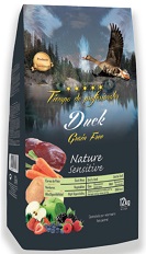 • Hidrolizado de carnes de ave (70%) (pato 21%) patata, legumbres, levadura de cerveza, grasa de pato, aroma natural de hígado de ave, aceite de salmón rico en Omega3, huevo deshidratado