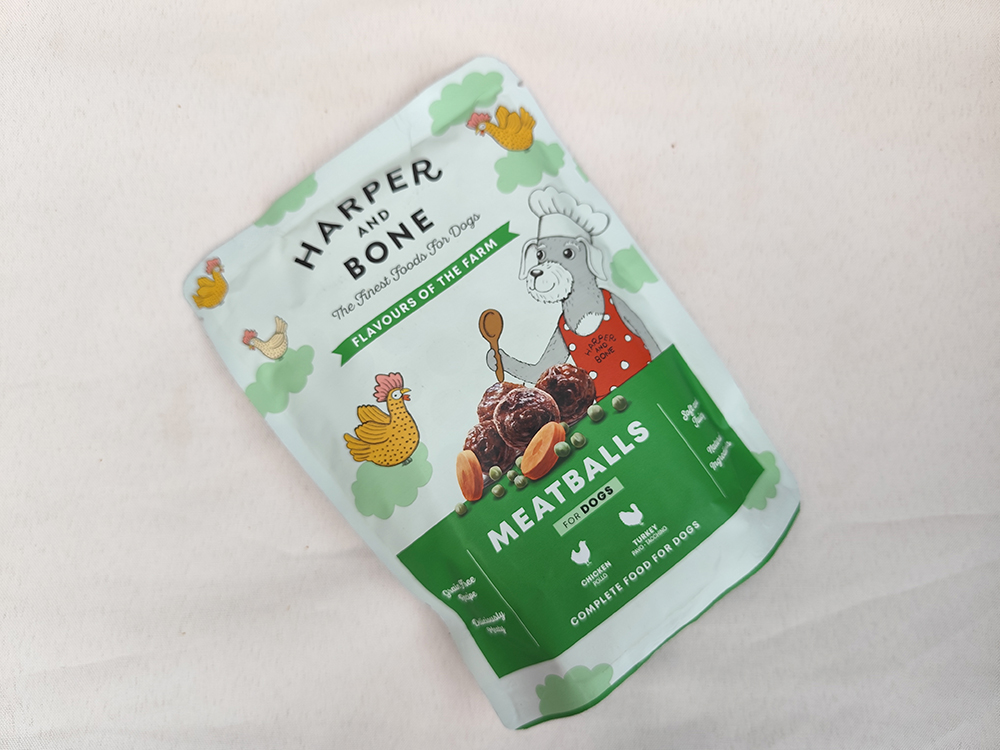 Harper & Bone tiene una gama de productos muy completa, que incluye piensos, Snacks, sticks dentales y albóndigas guisadas de carne fresca.