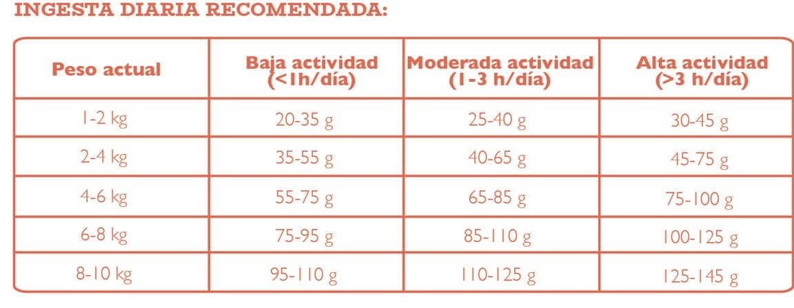 En otros piensos, las raciones de Django suelen estar entre los 140gr y los 170gr diarios… podéis observar que hay una gran diferencia