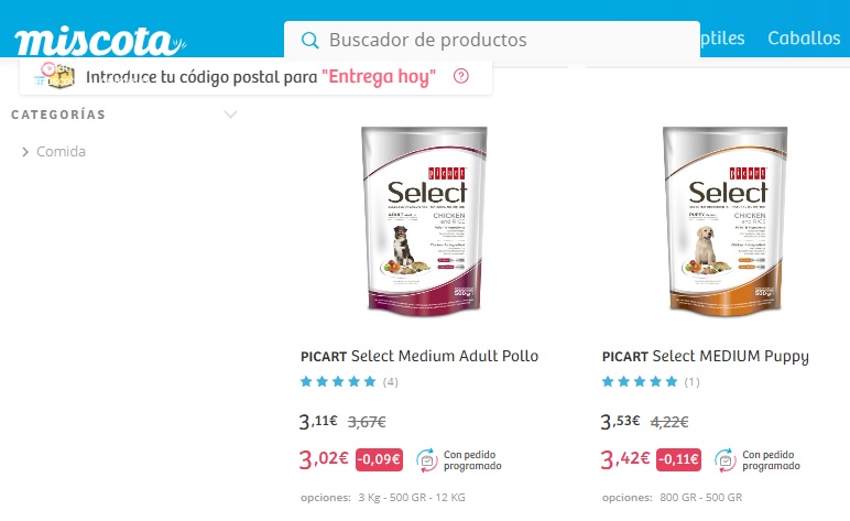 A la hora de comprar pienso Picart podremos encontrarlo en tiendas físicas y por supuesto en varias tiendas Online. La tienda OnLine que mayor surtido tiene y que mejores precios nos ofrece es Miscota. Os dejo aquí un enlace directo: www.miscota.es/perros/picart