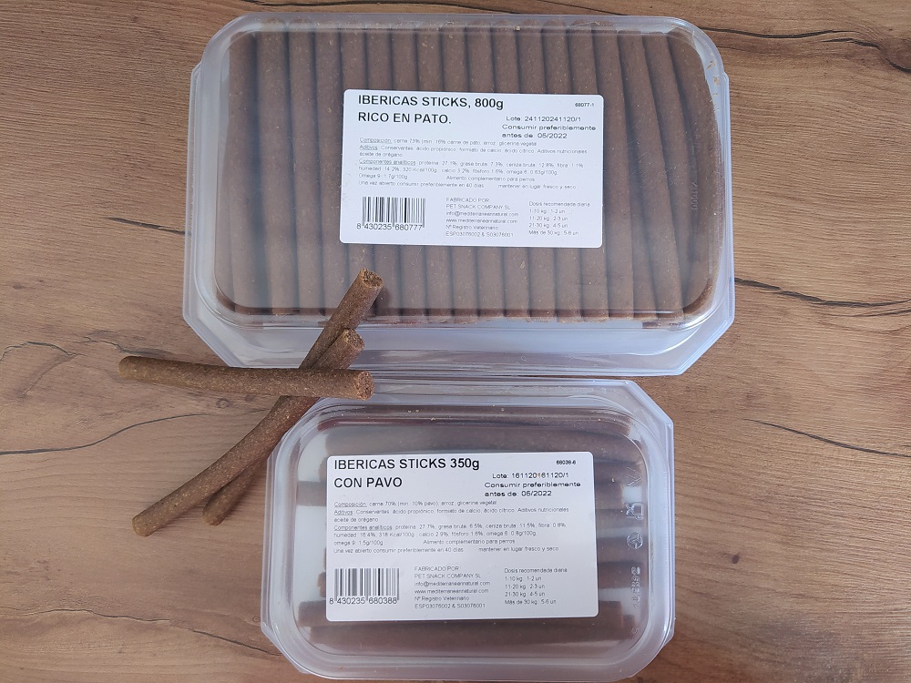 Por si no conocíais el producto, estas barritas son un delicioso Snack premium elaborado con con un 70% de carne (60% en el caso de las “Ibéricas Sticks for puppies”), Están envasadas al vacío y en atmósfera modificada para conservar el aroma y sabor en perfectas condiciones.