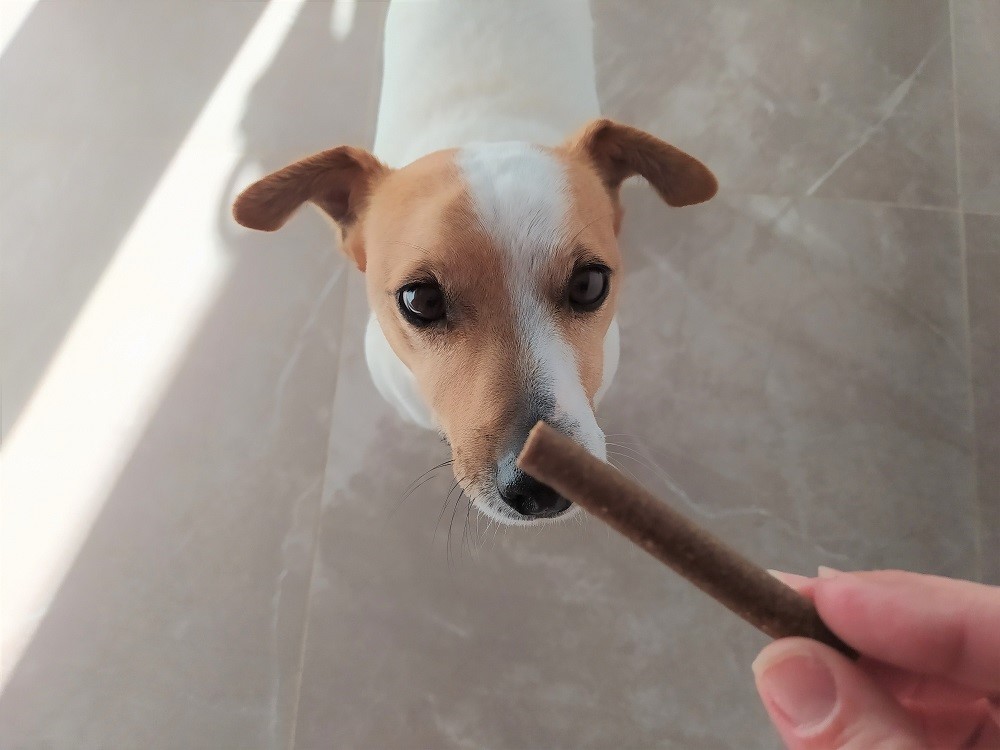 Me encanta cuando cojo una barrita porque automáticamente se les abren tanto los ojos que parece que se les vayan a salir de la cara, se sientan, y clavan la mirada en la chuche, ya nada en el mundo es más importante que esa stick jugosona y aromática.