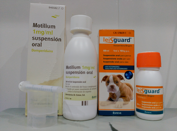 Leisguard es un jarabe comercializado específicamente para perros y contiene Domperidona como principio activo. Su precio es más alto (alrededor de 20€ por 60 ml).