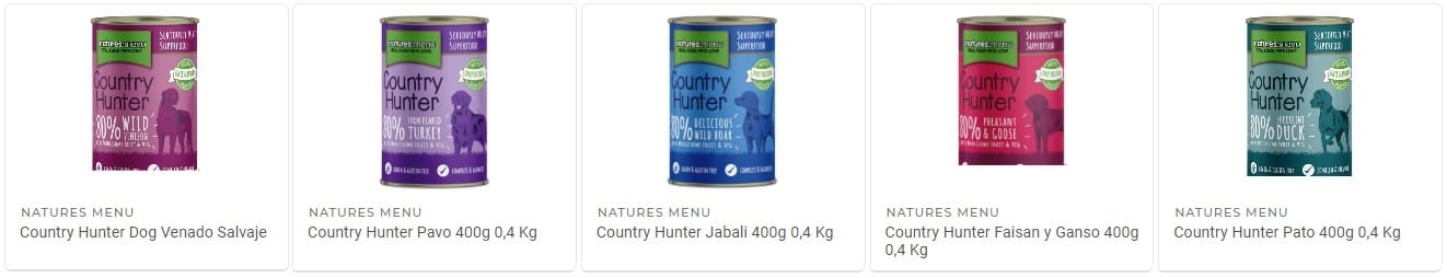 Gama Country Hunter: latas de 400gr con un 80% de carne fresca + 20% de verduras y hortalizas