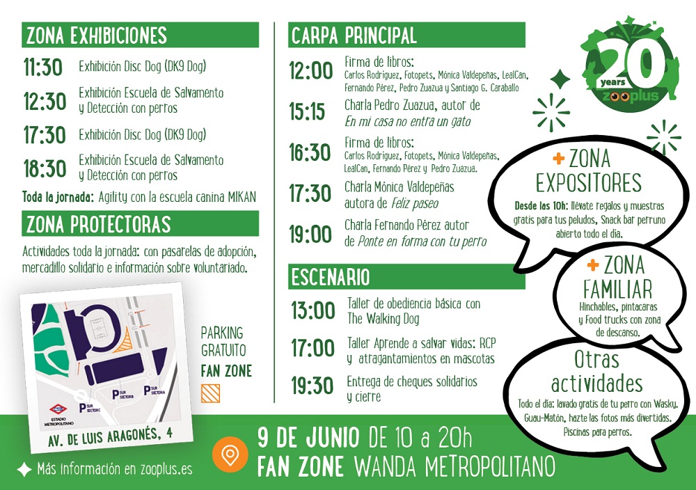 Zooplus ha organizado muy bien los espacios para que no nos perdamos detalle, en total son 6 espacios y en cada uno de ellos se tratarán diversas actividades: