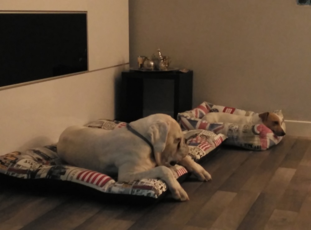 A Django, que generalmente lo pasaba peor, le ha ido muy bien mientras que a Hulk, que parecía que ya estaba superando el tema petardos y truenos, ha estado un poco más incómodo que Django pero mejor que otros años.