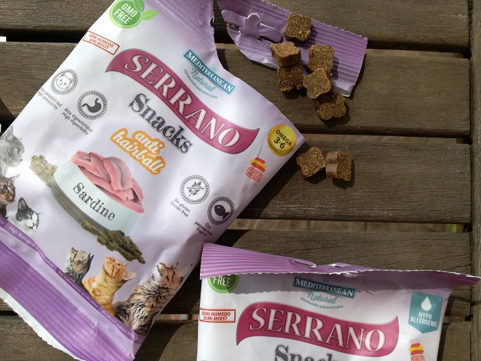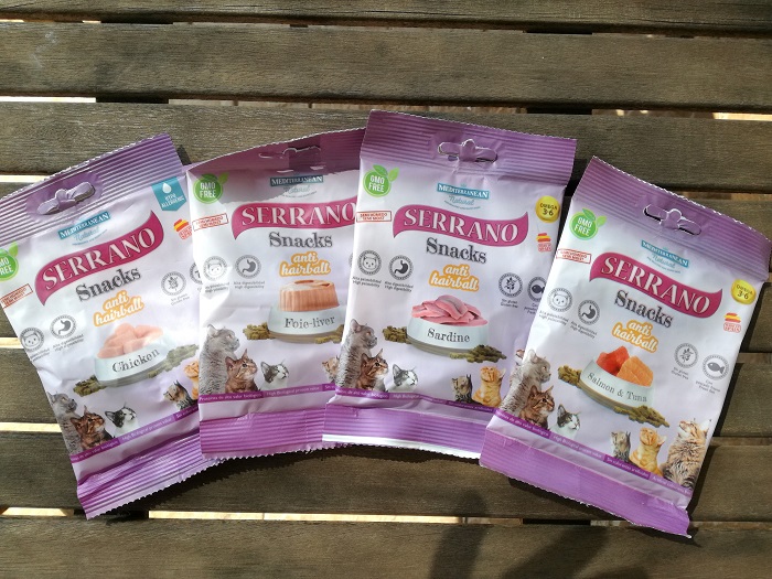 Si ya estábamos enamorados de Mediterranean Natural gracias a sus deliciosos Serrano Snacks para perros, ahora llegan y nos sorprenden con los Serrano snacks para gatos. Sí amigos, los gatetes ya pueden disfrutar de estos sabrosos snacks, que no solamente deleitarán sus paladares sino que además les ayudará con las molestas bolas de pelo.