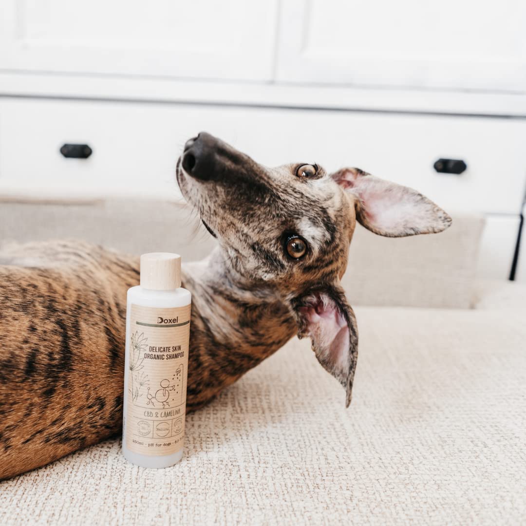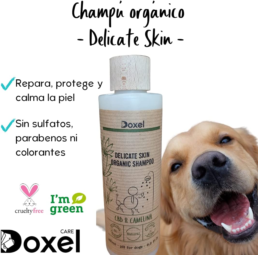 - Champú natural ideal para perros con pieles delicadas y sensibles. con aceite de Camelina. Alivia la sequedad y el picor. No irrita y ayuda a nutrir el pelaje.