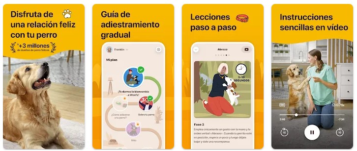 La app ofrece programas adaptados profesionalmente para los humanos, creados por entrenadores caninos y veterinarios experimentados. Los usuarios también pueden intercambiar experiencias con otros humanos (padres de perros) y compartir videos y fotos de sus peludos.